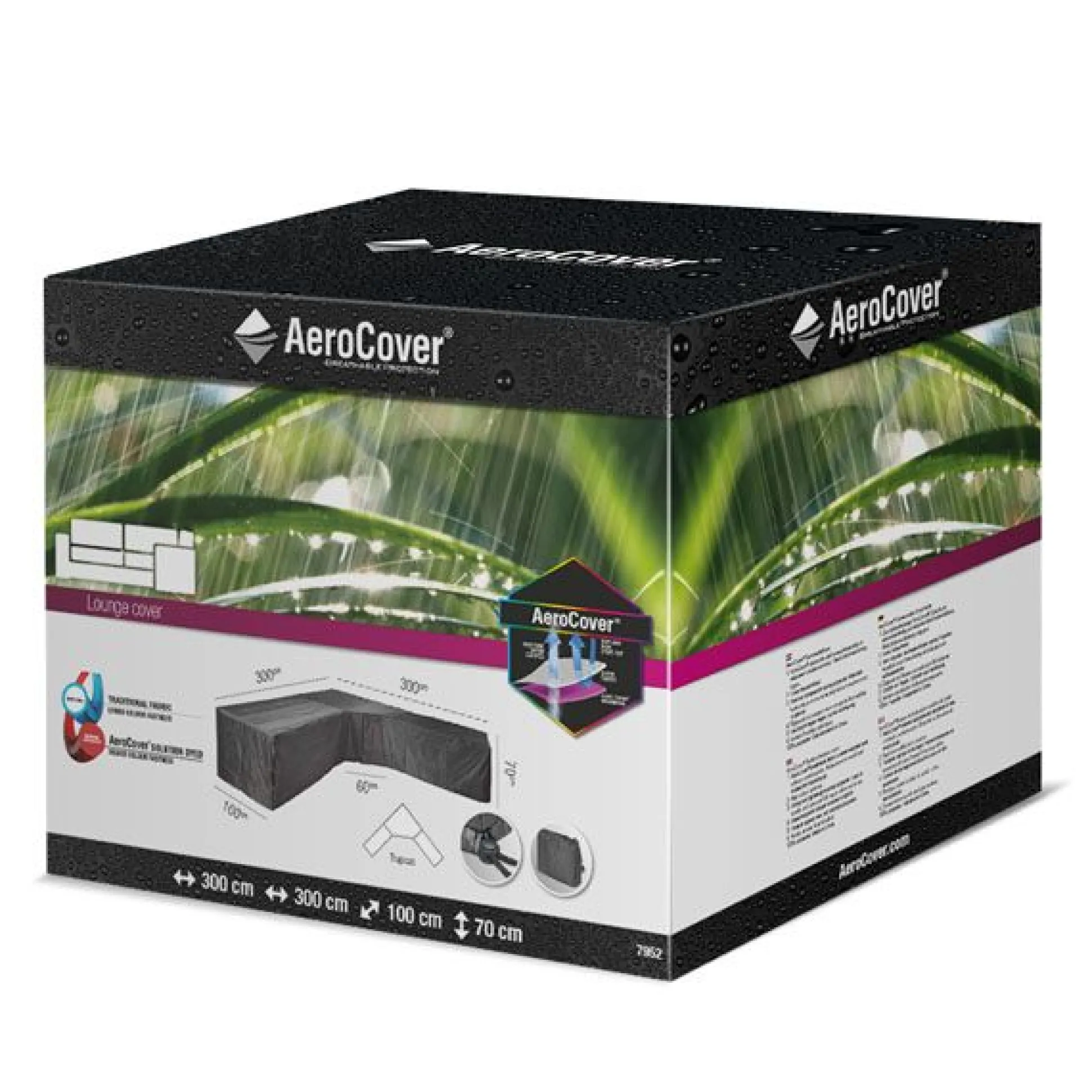 Loungesethoes voor hoeksets van AeroCover. Ademende loungesethoes voor loungeset met grote hoek of trapeze hoek 300x300x100xh70cm.