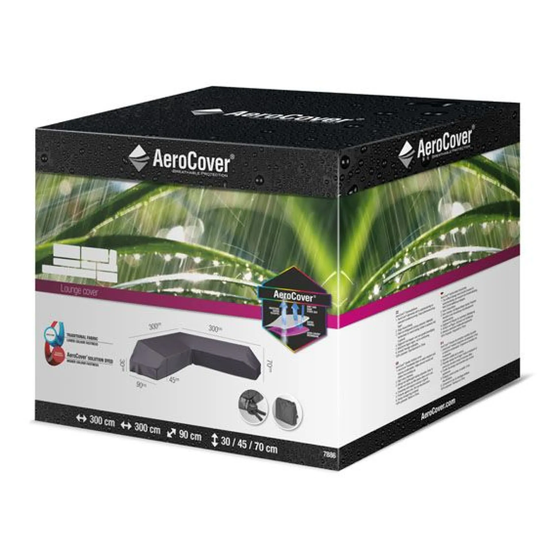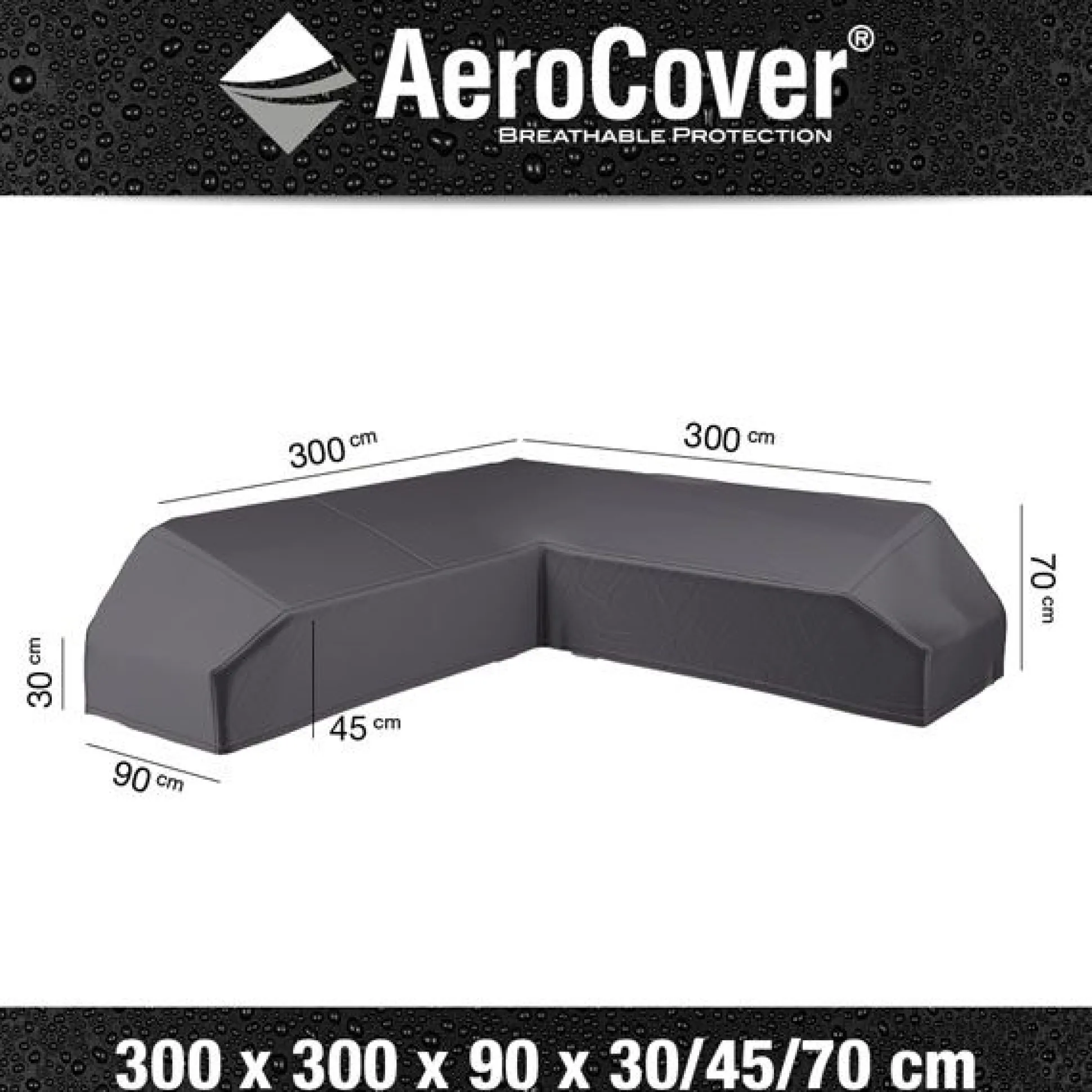 Loungesethoes van AeroCover. Ademende loungesethoes voor loungesets met platform 300x300x90xh30/45/70cm.
